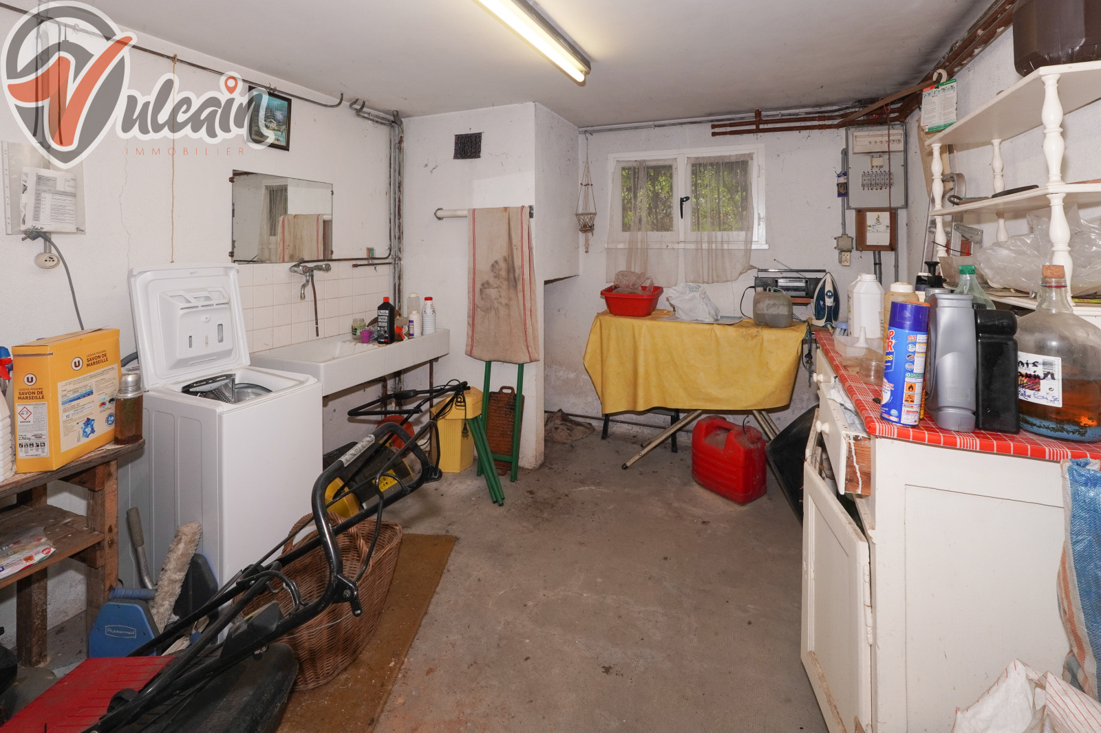 Elle se compose de la façon suivante : entrée, salon / salle à manger, cuisine, 2 chambres, salle de bains et WC, au premier étage : 2 chambres, salle d'eau, WC, greniers, au sous-sol : buanderie, chaufferie, atelier, cellier et garage.